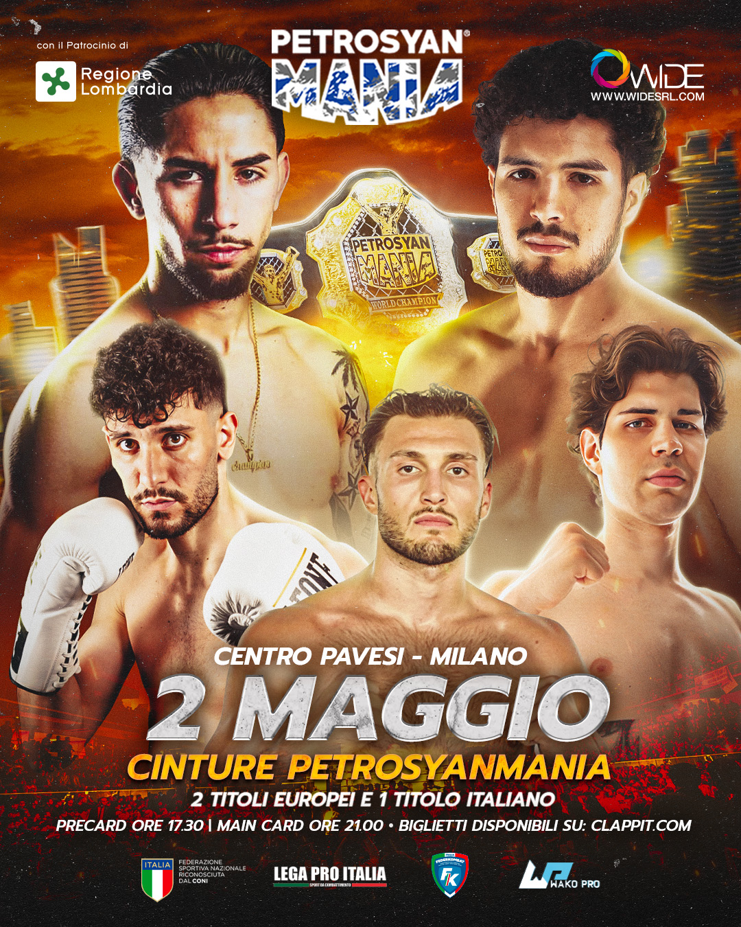 Main card: incontri internazionali, tra cui: 2 titoli Europei del circuito Petrosyanmania